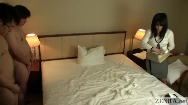 I was a bit surprised to see him escort her to the stairwell of a very Showa-era derelict building. I can imagine in a building like this half the offices are empty and the other half are companies that still haven't heard about Cool Biz. There, MAO gives her own brand of fellatio which involved more nuzzling and licking than what's considered normal. Somehow the director got off and even more amazingly convinced her to join him in the hotel where the bulk of this title was shot.