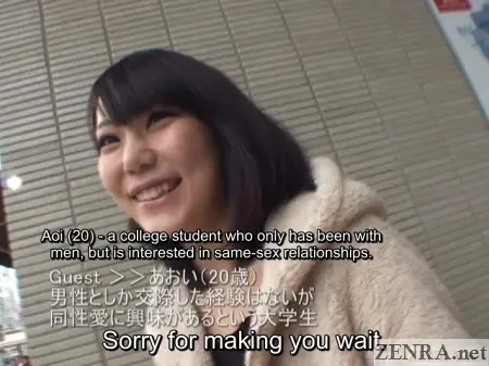 FIRST TIME LESBIANS--at least the type we've been showing on ZENRA--are compilations of titles originally released separately. GOGOS released a total of 16 with each running an impressive 2.5 hours. The biggest criticism we found about these 'uncut' titles going by the anonymous reviews on Japanese sites was the extreme amount of dialog. That also is a GOGOS trademark. Rather than quickly focusing on sex, they prefer to jam realism down your throats with a great deal of time simply getting to know the players of a title. It's a pretty solid idea, but of course it would lead to subtitles appearing non-stop which may get tiring for some viewers. We showed a title like this last year and although we enjoyed working on it, a bit more focus on sex without 15-25 minutes of clothed chatting in between 'play' would have been a bit nicer.