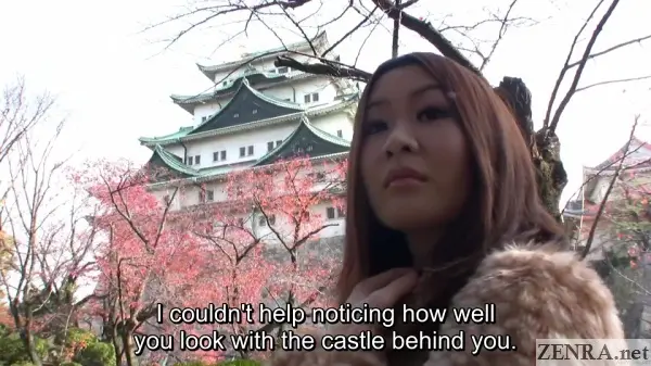 This time I was dying to get some footage of Nagoya Castle and brought along the perfect companion to make it very much worth it. Her name’s Hiromi Aoyama and she’s only 23! At a somewhat tall 167 cm (for a young Japanese woman at least!), she’s been a lifelong swimmer and an avid fan of karaoke. But most important are her looks: very cute and sporting a very nice body. She’s also been single a long time—over 1 and a half years! And you know what they say about long-term singles in Aichi, don’t you?
