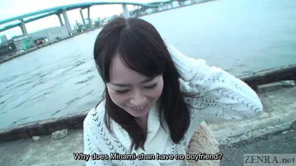 EROTIC NEGOTIATIONS FOR THE NAIVE--the title at least--is more about the surprise second scene of this very well put together Full HD title. Before the 'negotiations', we meet Minami-chan briefly looking over Tokyo Bay before she, the cameraman whom we have seen in a previous uncensored ZENRA release, mutually agree to visit a love hotel. There, after some more dialog to ease her nerves, another AV actor is invited in and the main portion of today's release commences.