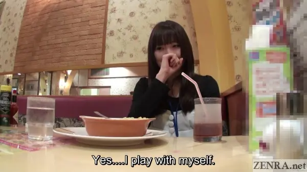The young Japanese woman starring in this release is incredibly cute. We really mean it. We love her look from the first meeting outside and in the cheap diner to her flushed face after the nakadashi finish. We love the bangs, the elfin features with a cute noise and pale skin. We love how she looks all over. We love her mannerisms!