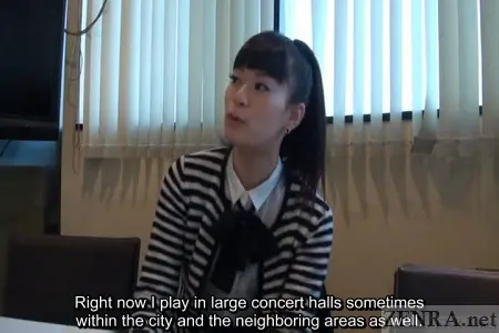 A further interview in a hotel room is carried out followed by a warming up sex session while the director continues talking to her about her recital. Emiri may not use her voice when performing, but she goes all out during coitus with caterwauling verging on nonstop. She takes it up a notch and then some.