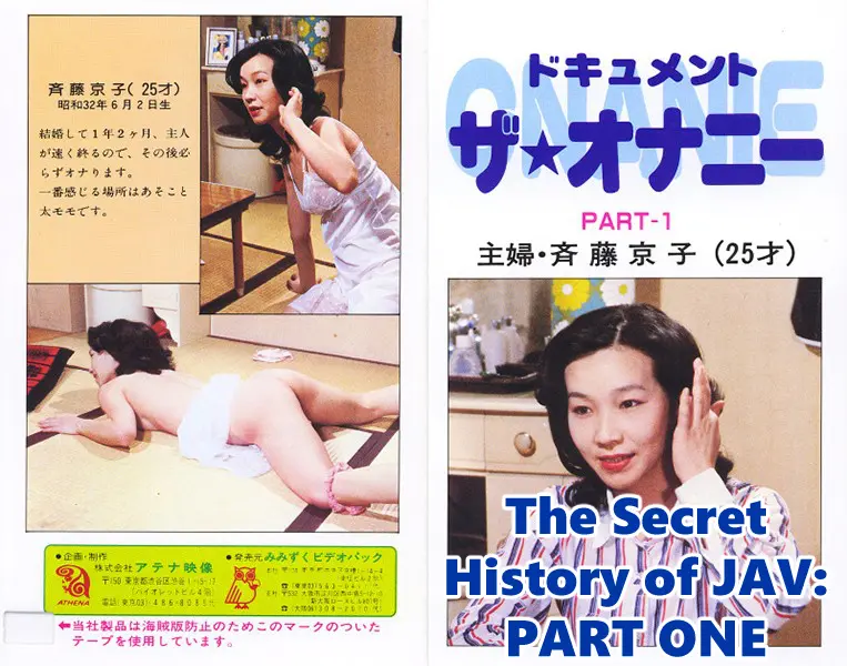It is said that the two first JAVs ever released in Japan were "Pornmag Girl: Secret Peep Show" and "Office Lady Pussy Report: Mature Secret Garden," published in May 1981 by Nihon Video Eizo. These works had a prepared script and shots cut together with a conventional filming style. At the time, the deciding factor between whether work was a porn film or a porn video was the method of shooting, aka whether it had been shot on film or shot with a camcorder.