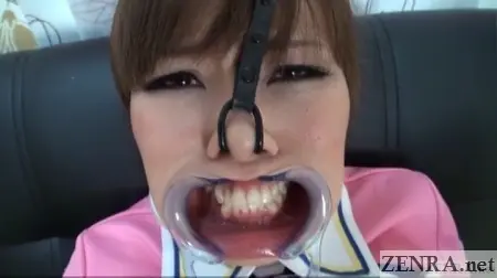 Nose hooks are back as well in this title. Along with them are the aforementioned pantyhose and cheek expanders that we featured some time ago in a previous update by FETISH-JAPAN.