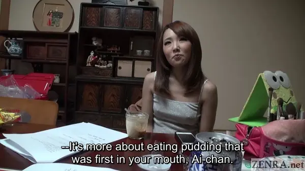 Public play also happened in a manga internet cafe, but this time it centered around a covert CFNM penis examination of SADE SATOU. AI was curious, handsy, and even used her mouth (and nose too of course). This was a bizarre scene in that it didn't conclude with an ejaculation (that came much later), but simply featured her smelling, touching, and licking the more indecent areas of SADE's body in very close quarters.