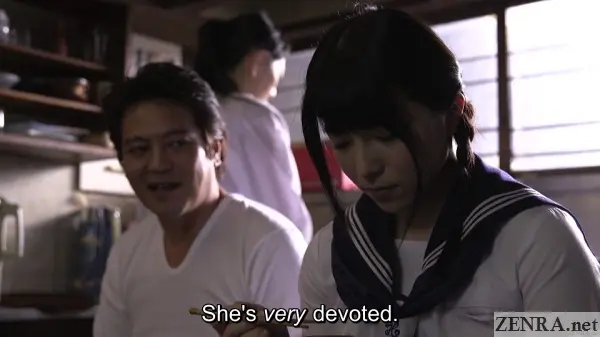 Special mention: the encounter between AI and her mother at the bottom of the stairs on the first night of her new life as a married woman is both tragic and fantastic. You rarely see such emotion and heartfelt delivery. Just imagine how both must feel: you've AI knowing her husband is waiting for her upstairs in their bedroom. He's waiting explicitly to have sex with her. She knows this, he's eager for it, and her mother right next to her by the staircase not only knows this, but remains there throughout the entire 'event' to ensure AI follows through. There are a few times during this consummation scene where the camera shows AI's mother sobbing to the caterwaul that is AI's sweaty emergence into womanhood. It's a beautifully-shot moment of deflowering. This is something you rarely see achieved in a JAV title and thankfully it was done by the masters of JAV drama: ORGA.