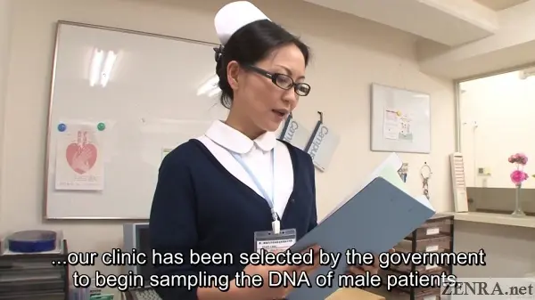 "In 2033, Japan still suffers from the serious issue of a declining birth rate. This was worsened by the low sperm pandemic beginning in 2029. Thus, the Japanese government enacted a law requiring all men to submit to DNA sampling. The goal is to locate ideal sperm via treatments provided by a specialized group of nurses."