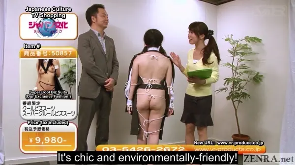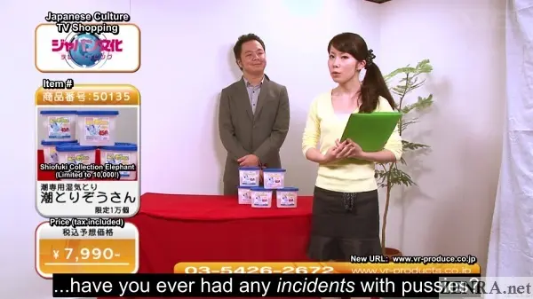 It's about darn time we put up a movie that puts the Z back in "bizarre Japanese AV" and what better movie than V&R's EROTIC TV SHOPPING CHANNEL? If you've ever seen home shopping network-type channels, then you probably already know what to expect. The concept of C-list actors trying to sell the same thing over 15-30 minutes with pricing and other information taking up the corner of the screen is now a global concept and Japan with its dangerously increasing population of idle seniors with money to burn make prime targets for domestic shopping exploitment!