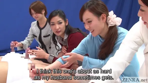 If you think harem play can't be topped, the director introduces even crazier ideas: less group sex with four beautiful Japanese milfs pleasuring you at the same time, but via the 'Idle Gossip Panel' where the four stark naked young mothers rest with butts sticking out while facing each other. It's extreme embarrassment while trying to hide sexual pleasure as they're randomly fingered and more from behind.