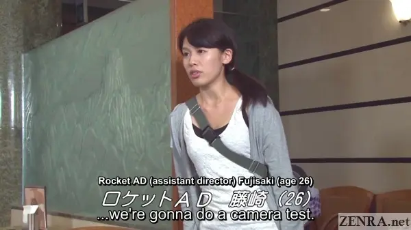 It's a surefire bet that ROCKET is the only JAV studio--past AND present--that has ever done multiple titles focusing *solely* on 'embarrassment performances'. Sure, shame play has been a factor in many a JAV. I'm sure some of our more seasoned fans and subscribers have seen domination titles where a stark naked woman may be covered in body graffiti (such as this drama title we added not too long ago!). While text-on-skin is featured in today's update, it only happens once and the shame this time around is not due to a 'normal' woman being put in extraordinary surroundings, but an extraordinary woman being put in normal surroundings.
