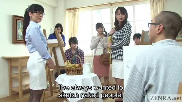 Nude art modeling and being aroused while posing is highly frowned upon. For women, it's way easier to hide and for guys...well, a bathroom break at an opportune time can amend certain issues. Nevertheless, actually being in that state while a bunch of old women (because that's mostly who's into this in Japan) stare at you less as a person and more as a semi-animate object to paint is far from a romantic encounter. This author can attest to the mundaneness of being a rough sketch model. It's several hours of mild boredom with sex and anything sexy way, way back in one's mind.