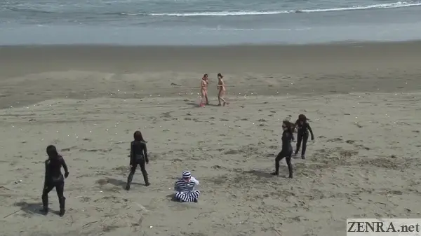While once upon a time, shooting outdoors was easy, seeing a studio push out something like STARK NAKED TAG in today's climate truly makes me wonder where director KANBE TAROU (who's easily my favorite JAV director of all time) and his crew located such an expansive place to shoot. We're not talking some tiny, secluded beach alcove here where a few quick outdoor encounters were filmed with the bulk of the title being shot indoors (OK, about half of TAG was shot in a 'mission tent'). STARK NAKED TAG features an immense amount of footage filmed right on and around the beach and nearly all of it features naked females running around attempting to find their captured partners. What's more, some of that beach footage features really overt lesbian play. Fingered to orgasm as the tide comes in shot in beautiful FHD? Check. Naked Japanese women passionately kissing as their pale bodies are engulfed by wave after wave? Also check!