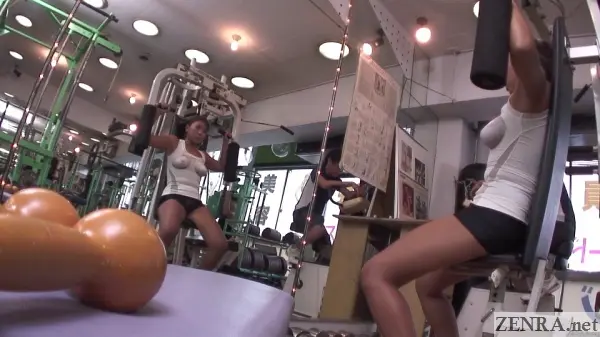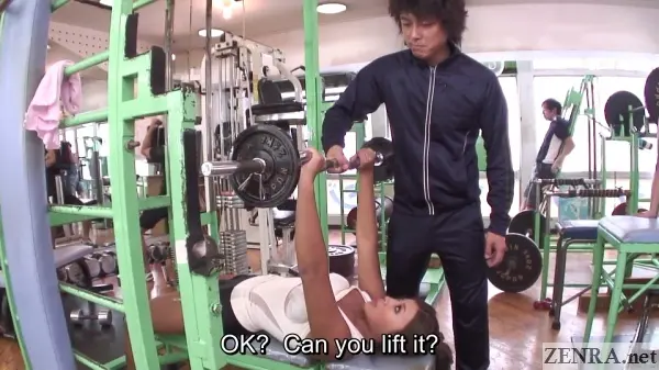BODY PAINT AT THE GYM is a relatively quiet title. Literally the first ten minutes or so simply has NAMI walking around training and exchanging brief pleasantries to other gym-goers. Soon after perma-perm OKUMURA becomes her impromptu trainer. Their training session starts normal, but once he notices how exposed he is, things quickly go off the rails. Dialog goes from standard personal trainer banter to a few sexual word puns before hard play commences. From there, it's uncensored JAV so you know how it goes.