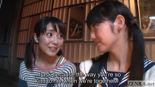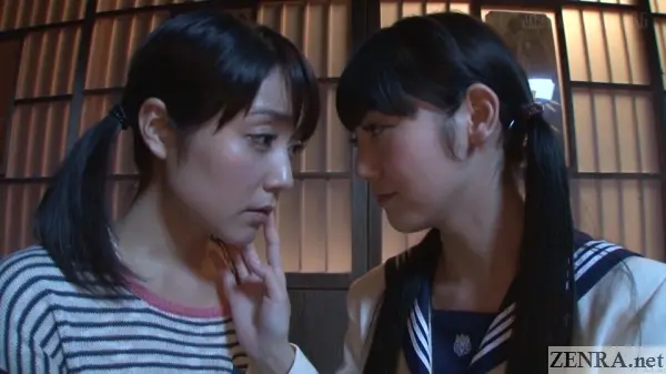 ACROSS GENERATIONS is a bittersweet story of lesbian love though the lesbianism itself isn't directly addressed. We found this a nice touch as it made for a movie where the physical romance felt pure and not even remotely salacious. These weren't two lesbian Japanese AV stars going by the books, but two female youths earnestly exploring each other's bodies in ways most intimate.