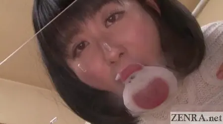 MISAKI OISHI claimed this was her first pure gokkun title. I haven't digged through her filmography hard enough to find anything that goes against this, but if this really was her first time regularly swallowing, then color me impressed! She never showed a smidgen of hesitation. From first squirt to the very last, it was elation and gulping in equal parts. No squirming, no red-eyes, nothing! For someone who's never done this before, it's truly fantastic work.