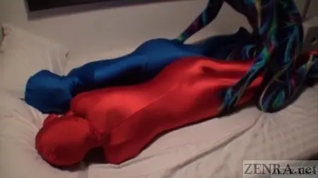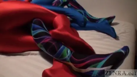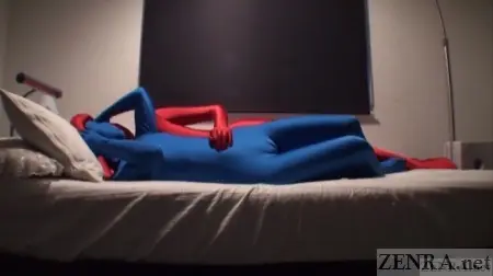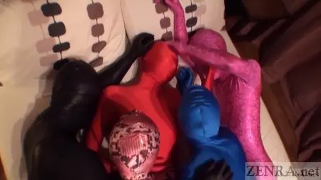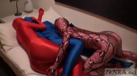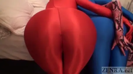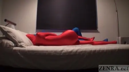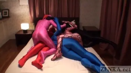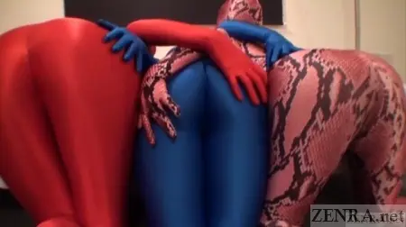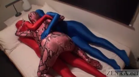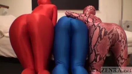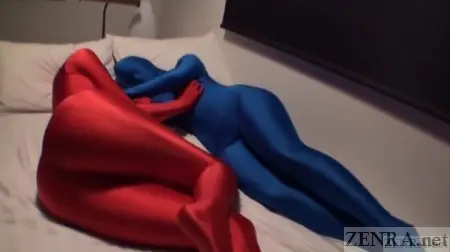 Now it's very hard to call what they do adult video. Having every inch of oneself covered makes it hard to be overtly explicit, but make no mistake: their titles are erotic and we could not turn down the chance to showcase a few of them on ZENRA. In fact, the second and third of the trio we licensed are much harder by featuring mutual masturbation to its natural conclusion and even include shots in the changing room. Underneath each ZENTAI uniform is a person and that person is as naked as they come!