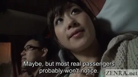What's definitely staged about the bus ride portion is that the back of the bus at least was filled with people in the know. Anyone who has seen RADIX titles will see some familiar faces. This wasn't done covertly as the director made it clear to both YUU and the audience that they were also going on the trip to [Redacted].