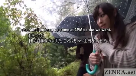 HIBIKI OTSUKI also did a title in this series with better weather and just as much public nudity that we may show in the future. Other JAV stars also have done some, but going by the preview images, the true blue outdoor portions are minimal and most of the sex after the initial bus ride happens in the ryokan itself. We'll probably skip those unless we really get a lot of anxious fan mail.