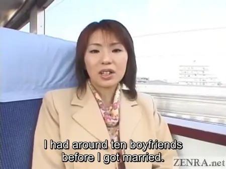 Speaking of reality, you can't deny that the train encounter in the first scene of IMMORAL WIFE BATHHOUSE VACATION was in a class by itself. Blue screens and fake train cars were *not* used. GUTS was never that big of a studio so fancy sets emulating trains and train stations were skipped in lieu of using the real thing! Yes, on a real train heading to their destination, a real unfaithful Japanese wife who never did JAV before stripped stark naked and had sex. I'm sure lookouts were used, but that scene by itself is a perfect example of some of the insanity done during the real golden age of Japanese AV. You'll never see that attempted nowadays. You'll find few places willing to even sell it!*