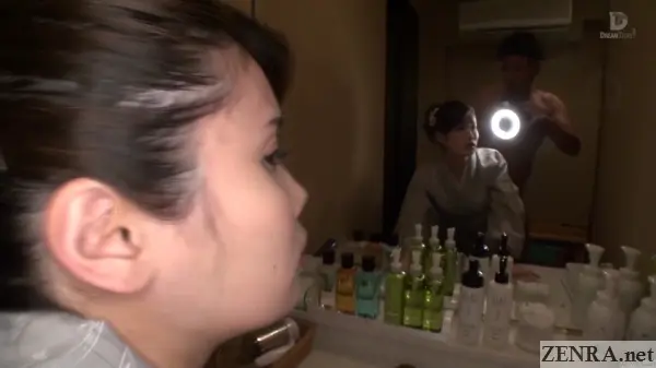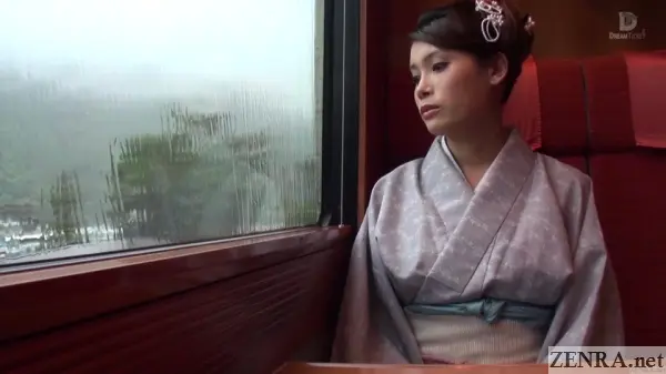 COME IN A KIMONO is an unfaithful wives release though one with very little dialog. The box cover mentions she's a young wife, but not much else is given. This is far and away from a GOGOS hot springs cheating release like TAE's. There is no deep back-story. There's no huge amount of buildup through dialog allowing the viewer to really get to know the woman. Instead, it's hard sex with a BDSM vibe from start to finish. AKEMI is there for prurient pleasure and the last thing she wants is to settle down and let the reality of what she's doing sink in.