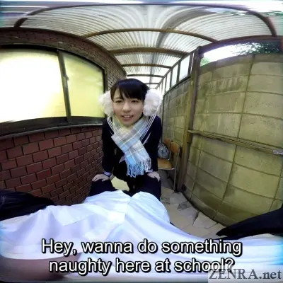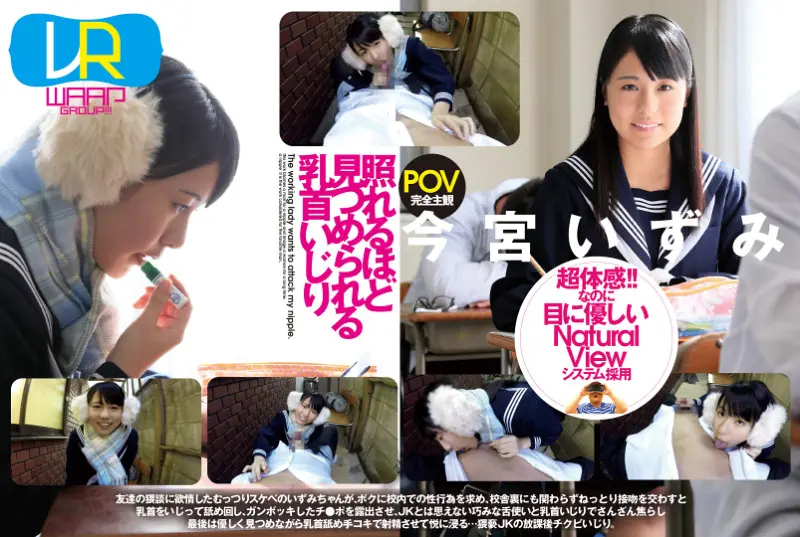 We're not sure whether it's done intentionally or not, but WAAP's VR titles more often than not feature younger actresses. They seem pretty big on exploiting the naughty Japanese schoolgirl trope and IZUMI IMAMIYA definitely plays that part well. In NIPPLE TEASING TO THE POINT OF EMBARRASSMENT, she takes the role of a bored, but mischievous schoolgirl who finds solace to her post-band practice ennui by teasing you just out of earshot of practicing classmates.