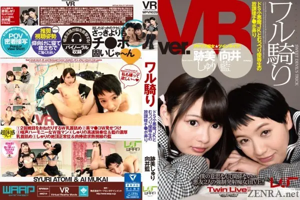 That and more's the theme to today's VR update via WAAP, RIDING SCHOOLGIRLS starring SHURI ATOMI (what a name!) and AI MUKAI, a very charismatic short-hair actress we already showed in a solo VR release from a few months back.