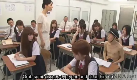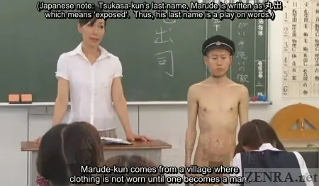 ZENRA #Subtitled #ClassicJAVSubtitled CFNM Japanese nudist transfer student becomes the center of attention in a Tokyo classroom and bizarre bathhouse attendant uniform malfunctions.