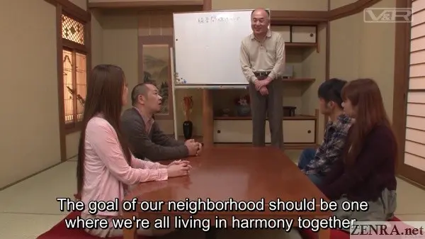 Don't let the preview for TWICE MONTHLY MANDATORY NEIGHBORHOOD ORGY deceive you! This is not a 150 minute nonstop orgy. And no, that is not an attack or even a nitpick. Nonstop orgies are great, but if V&R, a JAV maker known for insane amounts of creativity took *that* route, I'd be disappointed. I want humor, weird reasons for having sex, and seeing confused housewives engaging in the most prurient acts imaginable while their husbands watch on with approbation. THAT's what we get in this release--a truly amazing one I may add.