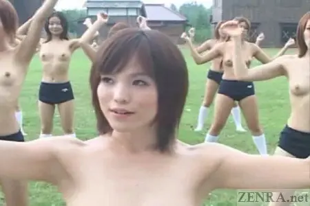 From jumping jacks to stretching in place to hip thrusts and various nostalgic arm movements that beg the question of physiological efficacy are acted out by this large group of bottomless (and towards the end, topless) Japanese schoolgirls and faculty alike. Overhead angles showing the mass of students perform as one is a given along with closer and more intimate shots such as slowly panning over each student from behind as they lean forward in a strange leap frog receiver motion is one of the highlights of this segment.