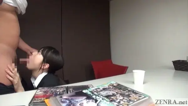 What goes on in NEW FEMALE EMPLOYEE should be taken with a grain of salt. From the get-go we're told female staff members may sometimes need to act as on-set fluffers when actors can't get hard. Does this happen in reality? You can figure that one out. Practicing blowjob techniques with coworkers and even going all the way with your boss while other new hires watch his self-shot filming techniques also is something straight out of JAV land. Real life working conditions at a JAV company are pretty much the same as any other office environment (with slightly later starting hours from what I've heard).