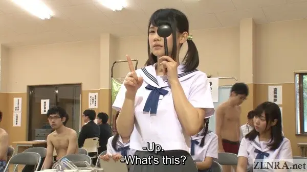 The best portion of EXAMINATION DAY 2 is when all the schoolgirls were stripped naked to have their temperatures taken via the anus. The director had the acumen to place a still camera right by their face at the perfect angle that also showed the curvature of her butt and the group of male students ogling in the background. Seeing their reactions as the brusque female doctor jammed it in while male classmates hooted and hollered (and fondled themselves) is exactly what SADISTIC VILLAGE is all about: embarrassed female nudity in an absolutely crazy world of instigators.