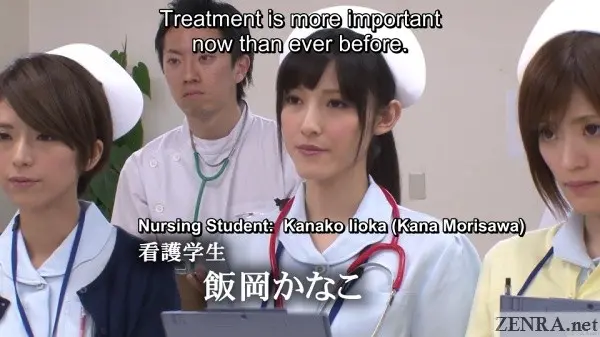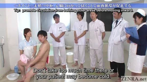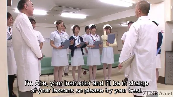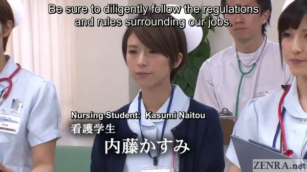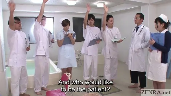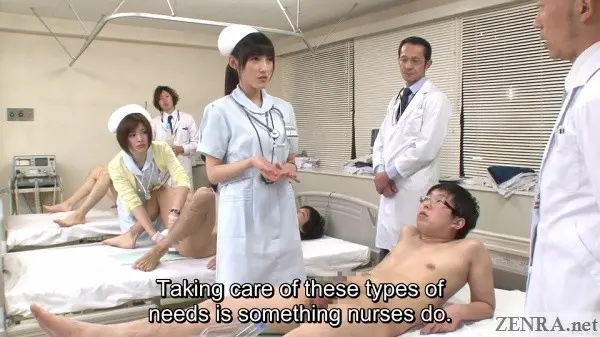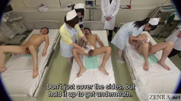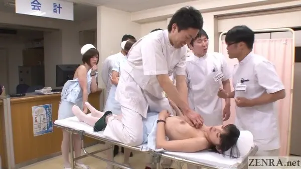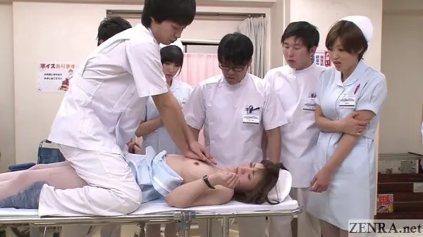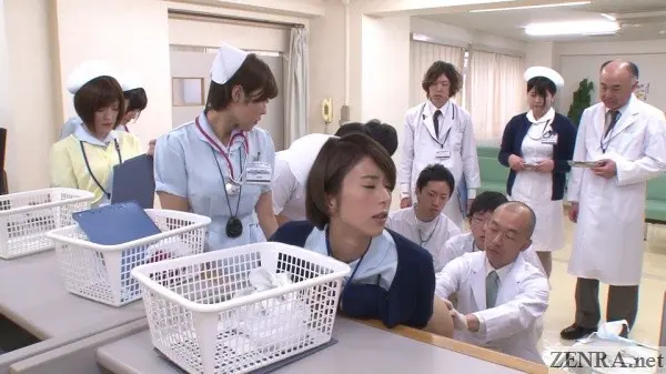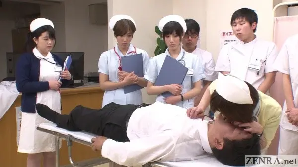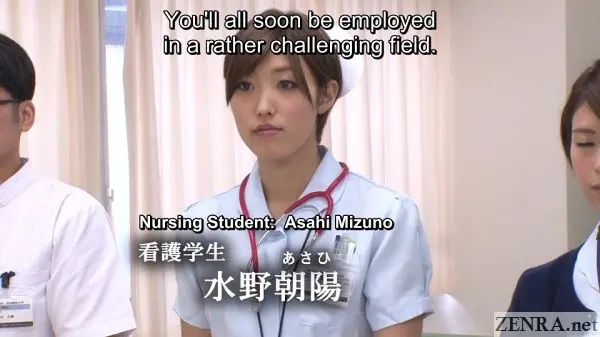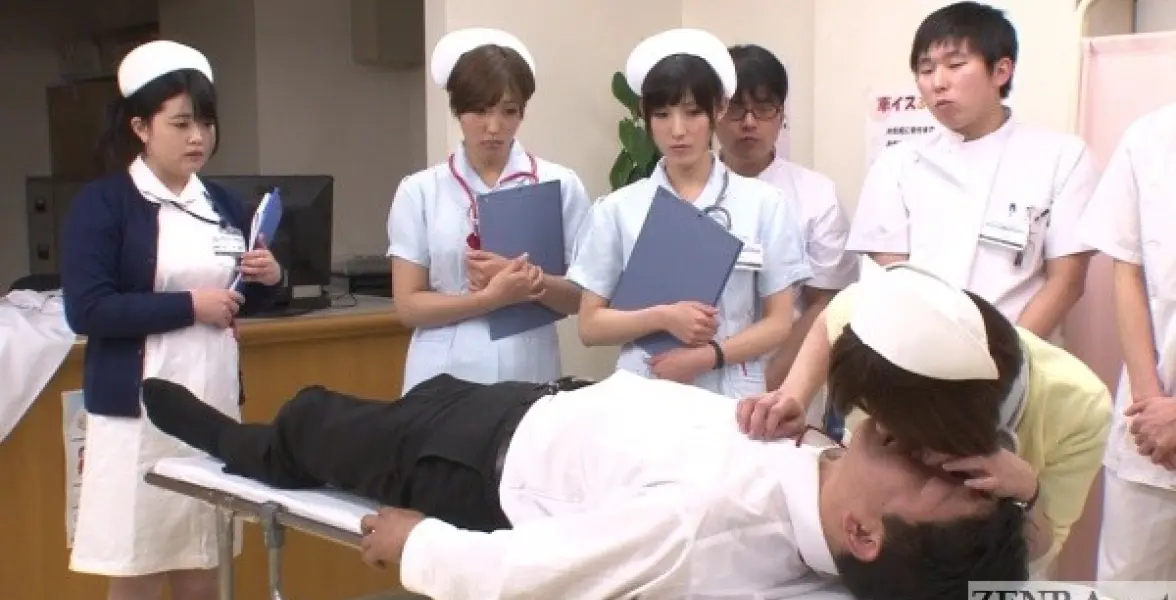 It's true that hands-on practical skill training is requirement for any prospective nurse, but going as far as to shave the pubic hair of your fellow students while everyone watches probably doesn't happen in real life. Seeing your cute coworker spread eagle while you and your classmates take notes as the doctor spreads her vagina with a speculum also probably doesn't happen. Assisted bathing including 'arousal disposal' via hands and mouths also is straight from JAV fantasy land. And that all goes triple when it's ASAHI MIZUNO being the embarrassed and naked nurse on full display.
