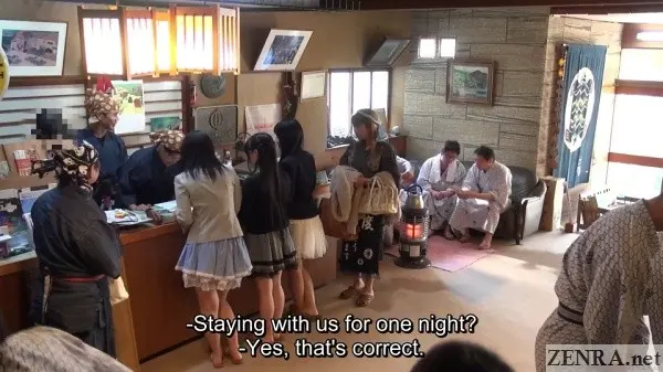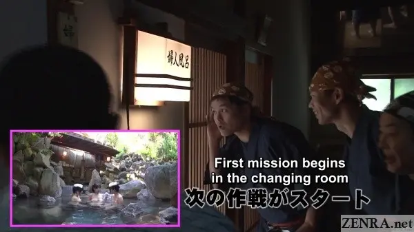 -Lots of embarrassed, naked women pranking at an actual onsen.
