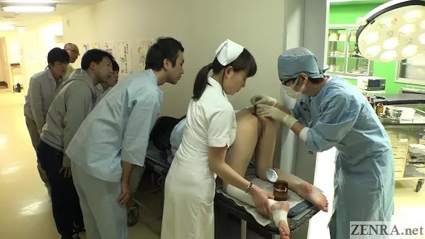 The name's self-explanatory, really. Bottomless, embarrassed women in a world gone mad. Each one of them in the four scenes that make up this 120 minute movie are our connections to the real world. This is another one of those mass instigator JAV movies where everyone is in on the prank except for one (or two as we see in the third scene) woman. It's bottomless CMNF from start to finish done in a purely medical setting.