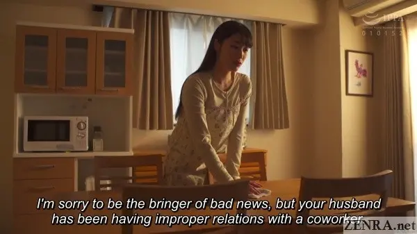 "Hanae (MIKI SUNOHARA), living comfortably in a upscale Tokyo apartment, is celebrating her fifth year of being a married woman. With her husband up for a promotion, the head of HR pays an unexpected home visit to deliver fraught news: he has been having an affair with the company director's daughter. Normally this would jeopardize his career, but he suggests they reach an arrangement instead..."