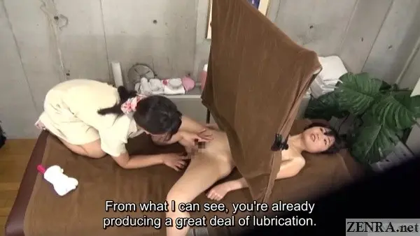 One of the things that has made the AOYAMA series so popular is that it's one of the few examples of lesbian massage JAV that doesn't break the fourth wall. What this means is from start to finish we've a clothed albeit mildly amorous therapist simply providing a full body service that just so happens focuses almost entirely on the more sensitive areas of her naked client's body. Moaning, squirming, and even 'accidental' orgasms are not only allowed, but encouraged. Erotic play doesn't explicitly happen while the client is looking, but once a 'gel towel' is placed over her face, that 'hot sponge' is replaced with a very skilled tongue. That soon segues to a 'hand massage' (fingering) and this is all topped off with liberal usage of the Aroma Sonic, the clinic's powerful and patent-pending vibration machine. 3000RPM of buzz affixed directly to the clitoris can make for truly pleasant sensations.