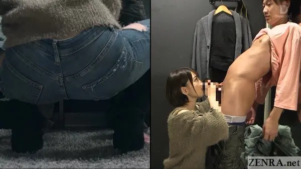 Today we're joined by ZENRA newcomer AMERI HOSHI in what could be the final iteration of the TEMPTATION CLOTHING SHOP series. I don't know the status of it now. The fact that the director is still very active and this studio is owned by the WAAP Group, my money's on simply giving the theme a breather rather due to not seeing any more like it. After all, unlike regular JAV movies, something like this requires a great deal of prep.