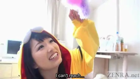 If leggy and revealing raiment is your thing, this is not the production for you. Turned On By Indecent Cosplay Pajamas is about cuteness. Heck, one of the Japanese AV star participants even sports a bonafied set of 'yaeba'--two upper canines extending lower than normal and somewhat comically resembling fangs. In the west, it means many trips to the orthodontist for uncomfortable braces, but in Japan, it's a sign of being cute and young. Shame and embarrassment do not mingle in any shape nor form with Japanese 'yaeba'. If anything, it's the zenith of the burgeoning kawaii culture boom.