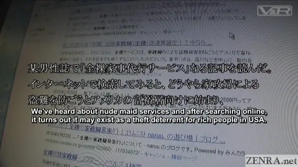 The gist: V&R hears about the nude maid phenomenon gaining popularity in USA. After doing some research, they find out the service now exists in Japan (!). Curious to see what exactly happens, they give a poor AD (assistant director) a wad of cash with explicit instructions to order their services and to film it. He complies (this is Japan after all; you'd think he'd just bolt with all that money?).