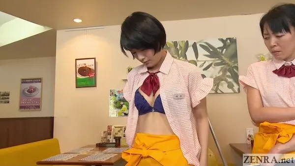 This Family Restaurant located somewhere in the suburbs of Tokyo recently hired two part-timers. Both are cute college students and both look suspiciously like familiar JAV stars. We've AI MUKAI who is fast-becoming a formidable MILF Lite (she may look mature, but she's only in her mid-twenties now!) and another actress currently transitioning to older women roles in spite of her age, YUURI FUKADA. We only just showed YUURI a few weeks ago. Just how it's coincidence we're showing today's update right after a previous one from the same studio, it's more of the same why YUURI is appearing so soon after her maiden ZENRA appearance (not that we can complain given her incredible looks!).