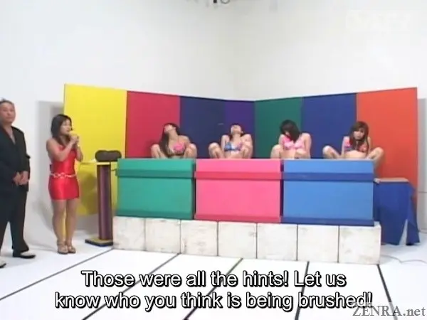 The theme in THE ORGASM BRUSHING ENDURANCE GAME SHOW is hinted at in the title: get women to orgasm via ...well, brushing. Sometimes air, sometimes brushing, sometimes fingering, and sometimes--and why not?--dicks! This is JAV after all and if sex wasn't included we'd lose a lot of fans looking for something a bit harder. Fun is the name of the game. Embarrassment too. The only other movie that comes close to the group-themed camp is WELCOME THE NEW STUDENTS, another movie shot by V&R on the same set with a very similar format. Sadly, while RIRI KOUDA has a cameo there, she's sadly absent from this one. Can't win 'em all!
