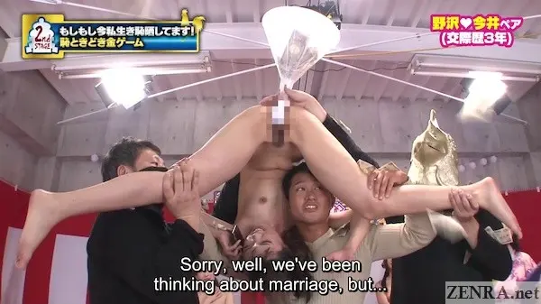 In today's absolutely breakthrough update, we've three cash-strapped couples (two dating, one married) willing to go to great lengths to win a lot of money. Hosted by YUI KAWAGOE whom by now has received my "Great JAV Hostess Seal of Approval" award nearly stealing the show. I still think of her at times as a naughty student, but I'm beginning to appreciate her transformation into a self-proclaimed 'sexy mama'.