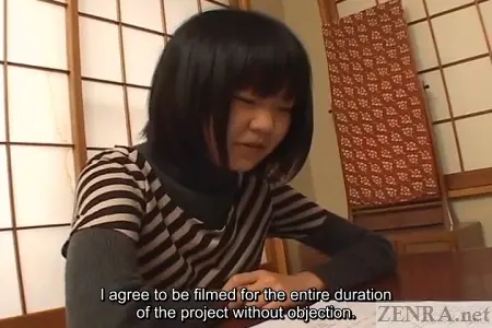 Due to the more controversial focus on this bizarre title, in a rarity for adult video both in Japan and abroad, the production begins with Maru Yamamoto being filmed signing and then reading out a consent form in its entirety (which is subtitled in English for those who are interested in these types of formalities). The only thing blurred from the final cut is her actual name--and no, we will not be providing it to anyone who emails us.