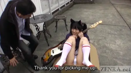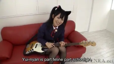 Costume changes happen somewhat often in FETIS titles. Yui Kyouno went through at least three and used a decent amount of toys. We even saw her with an anal-bead cat tail resting in a box while cradling a guitar in a rooftop fantasy scene featuring a confused yet elated nasal-enthusiast. He returns later in a very messy facesitting encounter that finishes with a pantyhose-clad footjob.