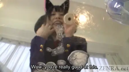 Now FETIS titles on one hand may have some similarities with regular 'document' AV titles. The overall format follows a similar trend with interview leading into acts of increasing lewdness. However, Sade Satou, the director and owner of this ambitious Japanese AV production company is all about turning his own desires into reality. There is an interview, but it also mixes in smelling panties. There's a scene all about the anus, but of course somebody's gotta smell those anal beads. A risque kitchen scene mixing elements of fun cosplay with foreplay...and uh, rice balls? Smelly vinegar armpits coated with sesame and salt!