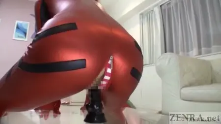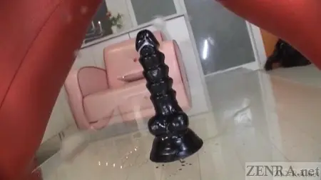 Oh, it also should be mentioned this title--like Sumire's FETIS appearance--has heavy elements of cosplay. Yui Kyouno is seen in various uniforms such as a schoolgirl-cat hybrid and later on in a bonus scene she cosplays as the short-tempered redheaded German-American from everyone's favorite apocalypse-is-nigh Japanese anime. That bonus scene follows the trend that began with Sumire's title which features a sable and life-like dildo affixed to a clear table. Self-pleasure filmed from a variety of angles concluded with an extended close-up of the well-used and naturally-lubricated sex toy conclude this quick scene.