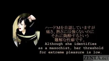 We're aware that this isn't exactly a 'Japanese' title...or is it? Although it stars a westerner, it's a brutal bondage title that also stars a skilled Japanese practitioner. It's filmed by a company in Japan for Japanese distribution as well. Building on this, we're sure today's release will ignite curiosity with a lot of ZENRA's viewers. 'How would a western woman react in a Japanese bondage scenario?' may be the question many of you are wondering. Elise Graves, being a self-proclaimed extreme masochist, responds as 'well' as any other woman--Japanese or other--when bound and stretched and pleasured by the exquisite arts that is TANBIKAI.