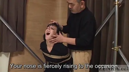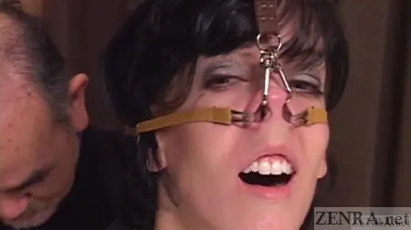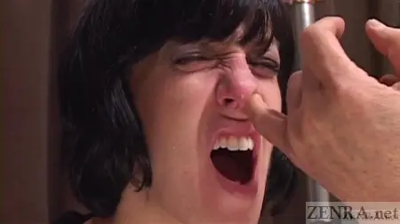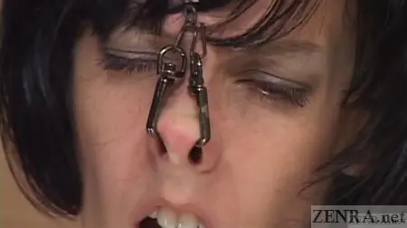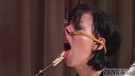 The format of THE UNIVERSAL LANGUAGE OF NASAL AGONY does not drift too much from previous releases. Our first foray into the world of TANBIKAI was actually a smidgen more hardcore than this release. However, one thing to point out is Elise Graves stayed to film a double feature. THE UNIVERSAL LANGUAGE is only the first half of her time in the bondage that is extreme nasal domination. The second half which we sadly are unable to show on ZENRA not due to EIZOH CHIBA's wishes against it (he'd love for us to show his entire library if possible!), but strict credit card billing regulations regarding certain objects existing the body. Think what happens when a lovely lady has received one too many enemas...yup.