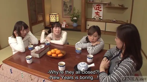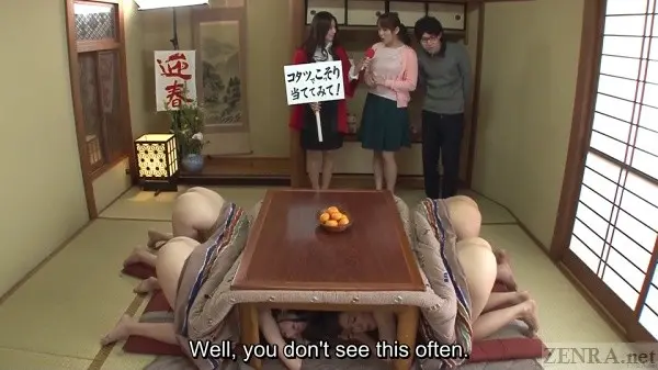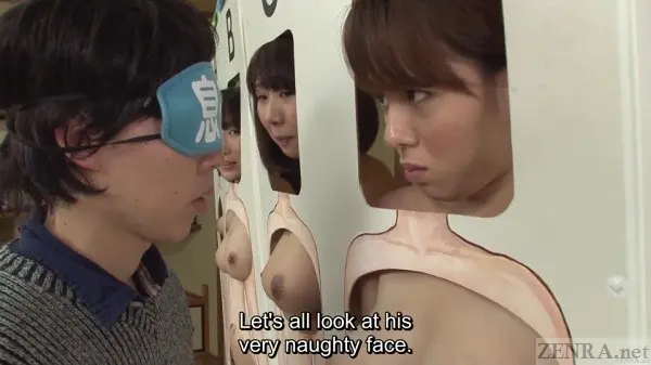 Being known as a JAV studio that really does accept and film fan requests, what we get in THE PRIVATE PARTS GUESSING GAME HOME VISITATION NEW YEARS SPECIAL is everyone's favorite game showing moving to extra cramped quarters but somehow SUCCEEDING in spite of it! Certainly helped by veteran host RIRI KOUDA, we get lucky Takashi-kun (whom I am darn near certain was in a previous edition of this series using a different name and with a different cast...) and not three nor four or even five, but six females eager to strip down so they can have their private parts intimately looked at, licked, touched, and you know what else all to win some New Years cash. While we don't find out just how much money is on the line, the envelope RIRI parades around is really, really big.
