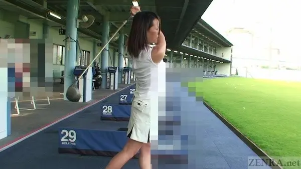 Obviously if you prefer actresses under 40'ish, RYO KAGAMI may not be your ideal woman. But otherwise, good grief does she GOT it. I mean it! That smile, those looks, that bedroom passion, the curves, the fit butt, a love of rubber-free no pull-out unfaithful sex. A most ideal Japanese woman who anyone--even non golf fans--wouldn't mind going to the range with if the after party was held at a private love hotel suite for two.